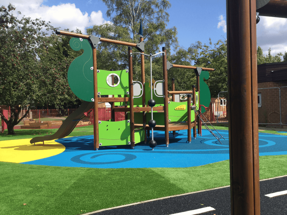 DCM Surfaces worked on the school project with HAGS. Colourful, playful and an environment where children were safe to run around and explore, were the requirements from the school. As the children ranged in age from 5 to 11 years, the space also had to be accessible for all ages.