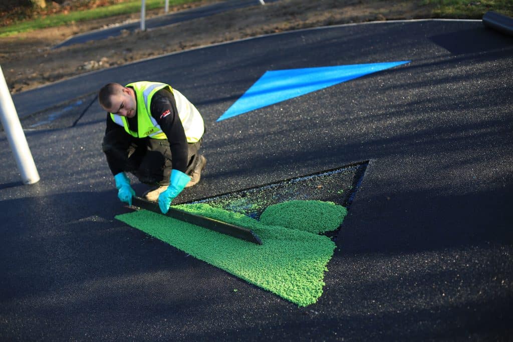 Lower Bentham required a playful environment where children were safe to run around and explore in a safe and secure space. Wet pour was used to create a variety of brightly coloured shapes.