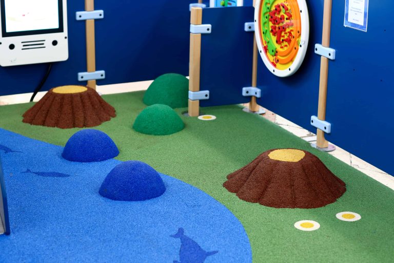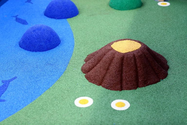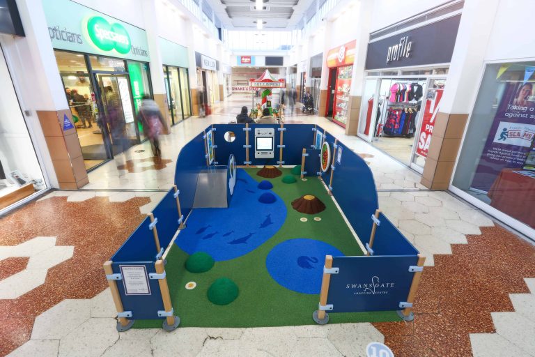 DCM Surfaces installed a colourful wetpour design at Swansgate Shopping Centre in Northamptonshire. The small indoor area included nature inspired graphics and mounds for children to interactive with.
