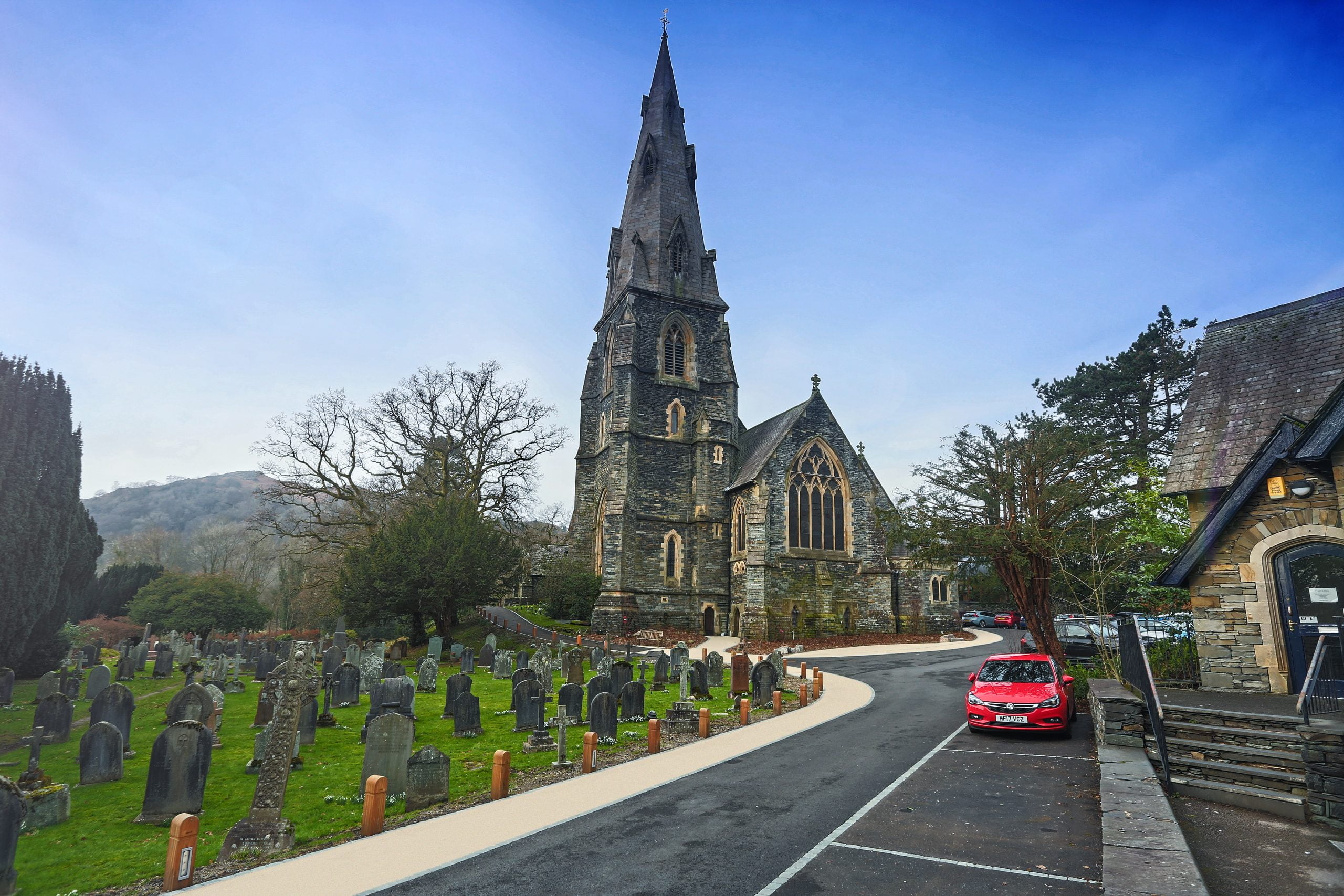 DCM Surfaces installed Peal Quartz Resin Bonded Gravel to give a refined and high quality finish to the church grounds.
