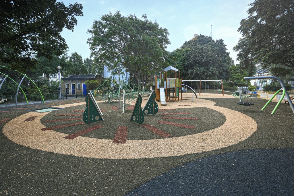 DCM Surfaces were contracted to install the surfacing at an “inclusive” play project at Westfield Park, Royal Borough of Kensington & Chelsea.