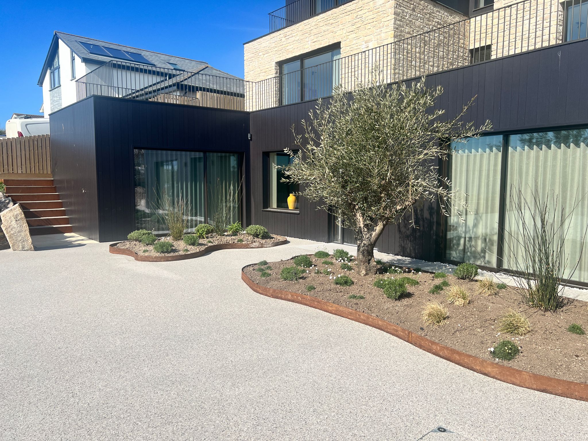 DCM recently completed a resin-bound gravel installation for a residential project in Mawgan Porth, covering almost 100m² across a driveway and steps, finished in Danish Quartz.